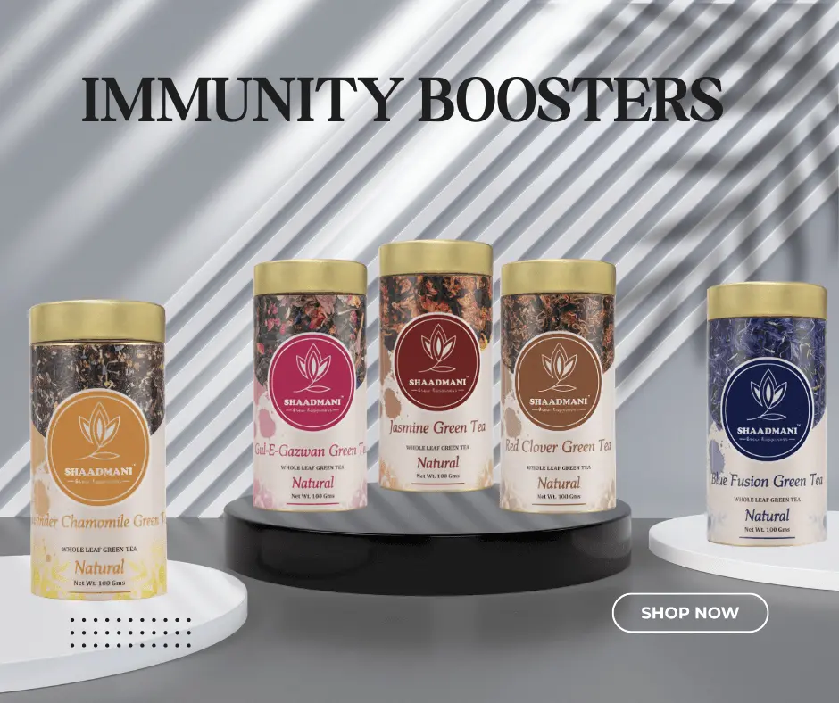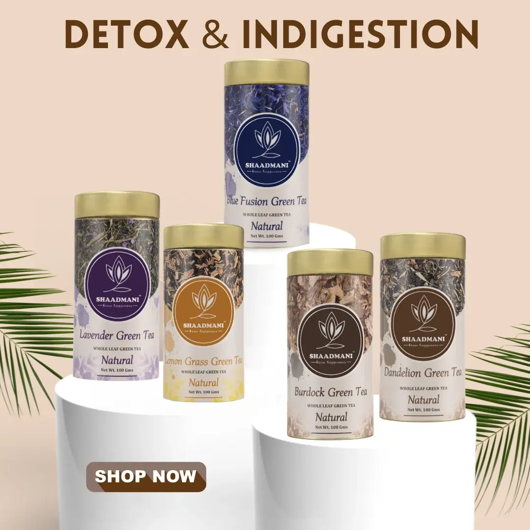 Select options This product has multiple variants. The options may be chosen on the product page Quick ViewMRP: ₹399.00 – ₹649.00Price range: ₹399.00 through ₹649.00Shaadmani’s Green Tea with Butterfly Pea will help you look your best. This tea is rich in antioxidants that prevent premature ageing, improve skin tone, nourish hair follicles, promote hair growth and remove toxins from the body.